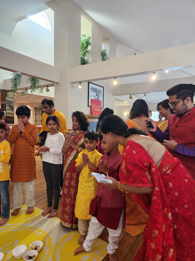 Engaging in the beautiful tradition of revering and paying homage to the divine Goddess Saraswati.